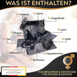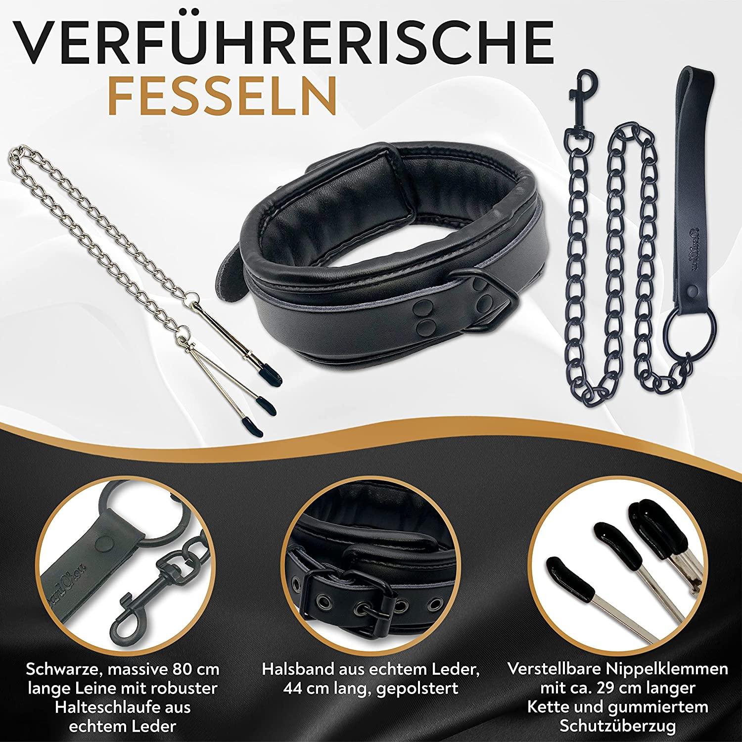 • Das Set besteht aus Echtleder, Kunstleder, Baumwolle, Plüsch, Silikon, Metall und Velours – alle hautfreundlich und geprüft.