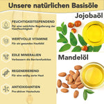 Pflegende Öle: Mandelöl und Jojobaöl spenden Feuchtigkeit und machen die Haut geschmeidig