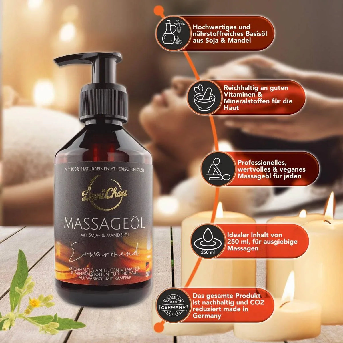 DaniChou Massageöl Erwärmend 250 ml – Wärmendes Massageöl für intensive Entspannung