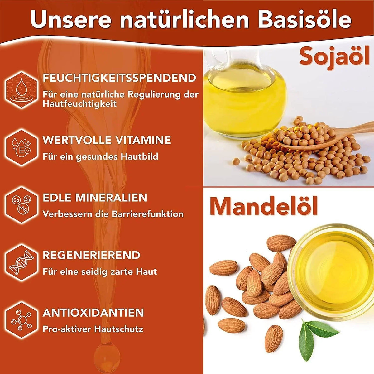 Hergestellt in Deutschland und basierend auf natürlichen Inhaltsstoffen, entspricht unser Massageöl wärmend 250 ml höchsten Qualitätsstandards. Es ist vegan, enthält keine Parabene und eignet sich für alle Hauttypen – auch empfindliche Haut.