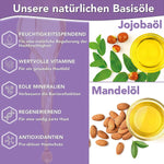 - Pflegende Inhaltsstoffe: Mandel- und Jojobaöl pflegen die Haut intensiv und hinterlassen sie weich und geschmeidig.