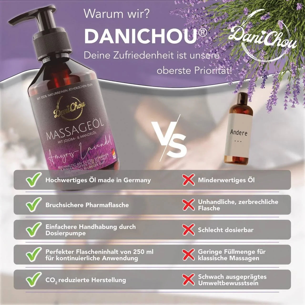 Die Vorteile von DaniChou Wellness-Massageöl Amyris-Lavendel 250 ml