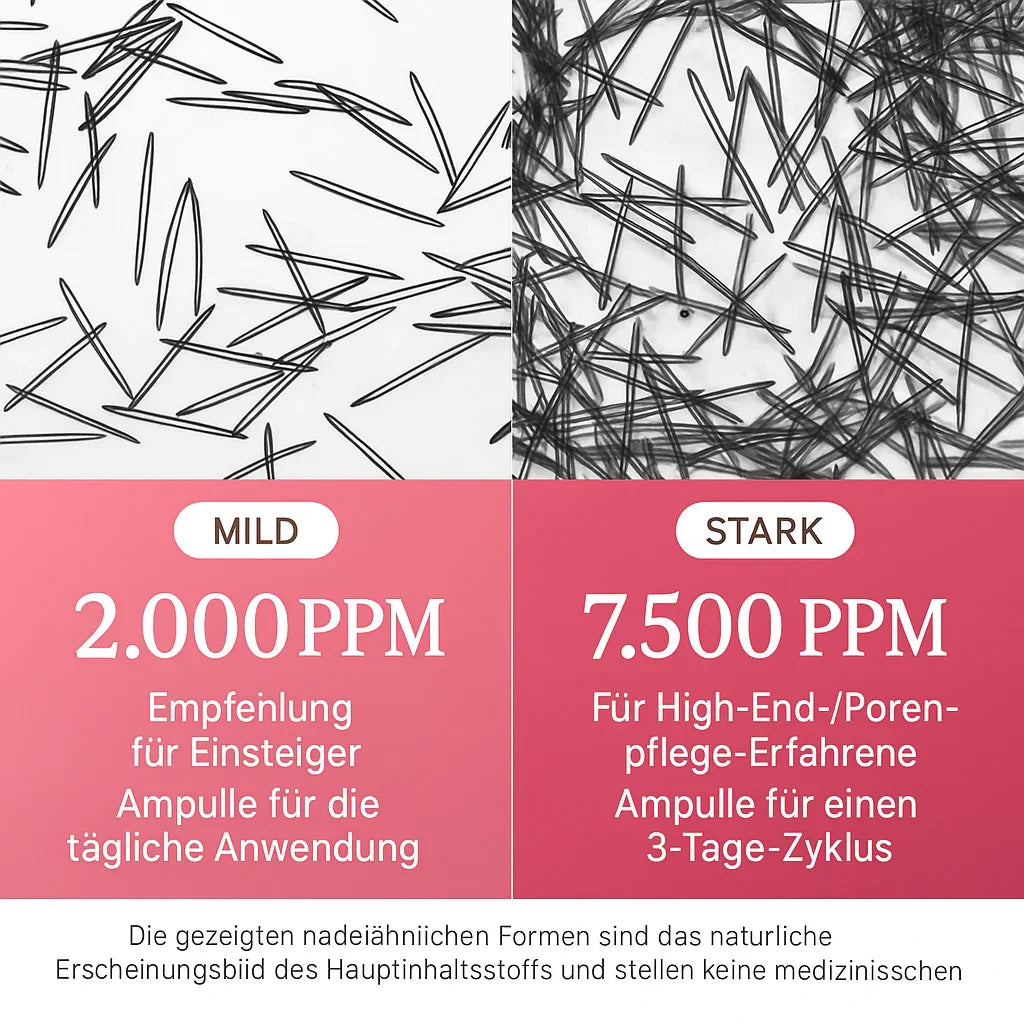 This serum is ideal for all skin types and especially recommended for uneven skin texture, enlarged pores, or loss of elasticity. Thanks to its highly effective formula, it's suitable for beginners with the gentle 2,000 PPM version and for experienced users with the intensive 7,500 PPM ampoule. It's the perfect choice for anyone looking to take their skincare to the next level.